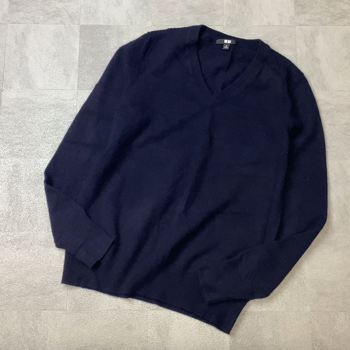 - 【高級感溢れるカシミヤ 100%】ユニクロ UNIQLO カシミアニット vネック セーター レディース Mサイズ ネイビー 滑らか着心地