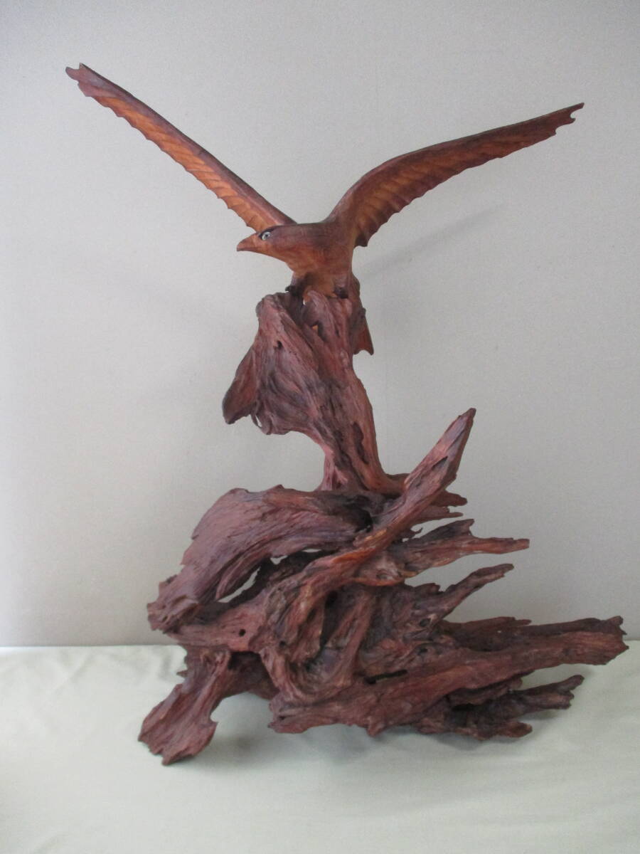 - 木彫【鷹の置物】: 天然木・彫刻・美術工芸品・インテリア・オブジェ・タカ・ワシ・置物