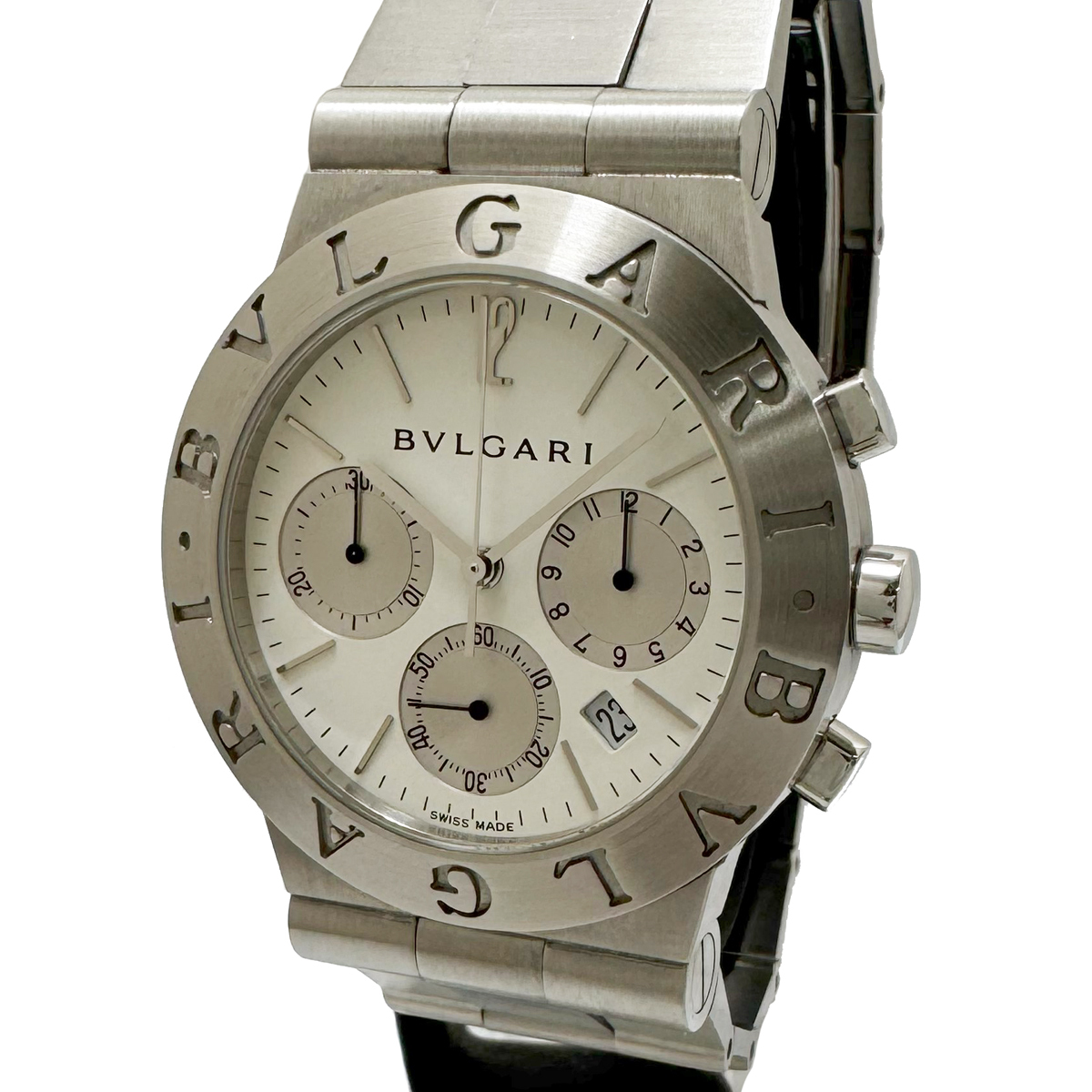 > ブルガリ ディアゴノ スポーツ クロノグラフ デイト クォーツ QZ CH35S メンズ 白文字盤 BVLGARI