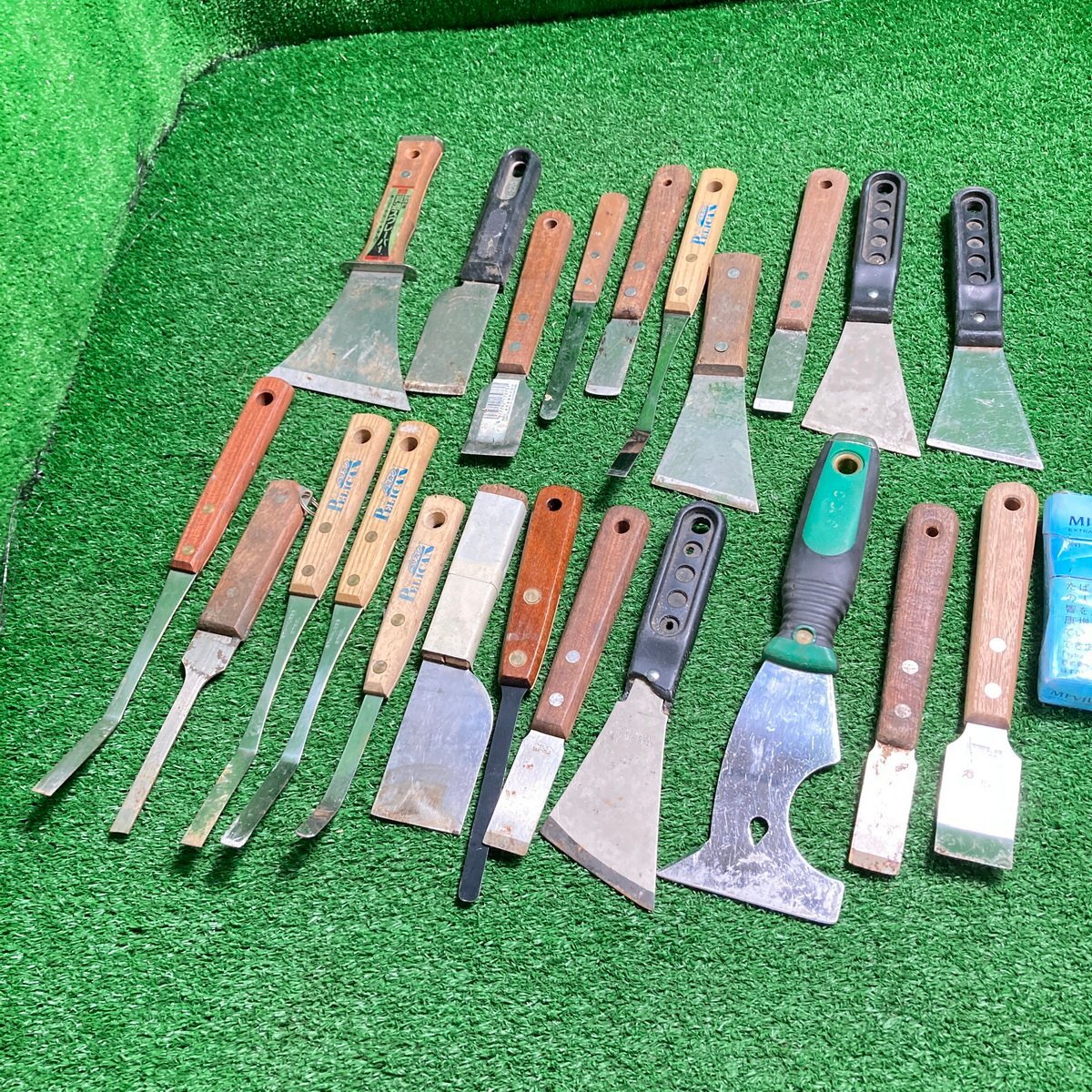 - 洋清i166 SK11他 ★計22本セット★ スクレイパ・ヘラ・カワスキ・ケレン各種■ツバ付貫通 コーキングヘラ 直/斜/平/曲刃各種 刃巾9~95mm
