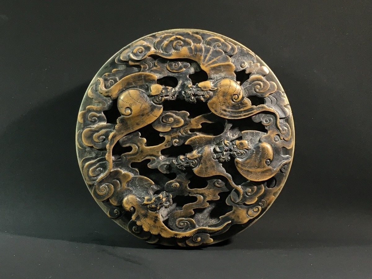 - 清代 松花石浮彫 五福祥瑞文房暖硯 雍正年製銘【仁】手彫り 文房具 書道具 中国古硯 蔵出