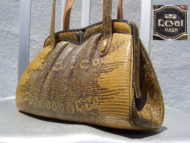 - ●1960S ROYAL 蛇 蜥蜴 鱗 和装 着物 がま口型 魔美女のハンドバック センチメンタルモダン 昭和レトロ アンティーク ヘビ トカゲ革 希少