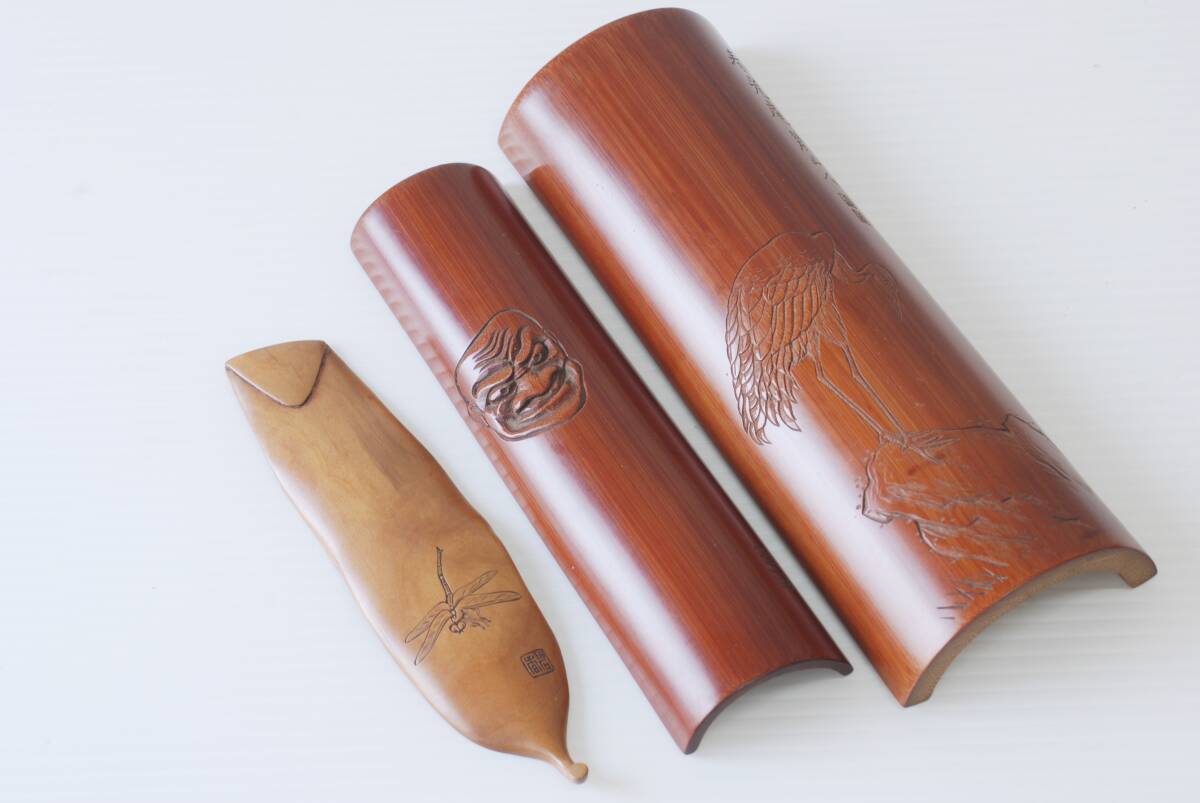 - 碧山 茶合 まとめて 3点セット 蜻蛉 面 鶴 16.2cm~21.2cm|茶斗 煤竹 茶量 煎茶道具
