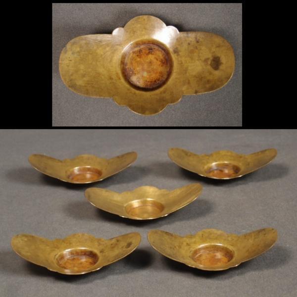 - 【金富士】清時代 手作り黄銅/真鍮茶托5客 煎茶道具 中国古玩