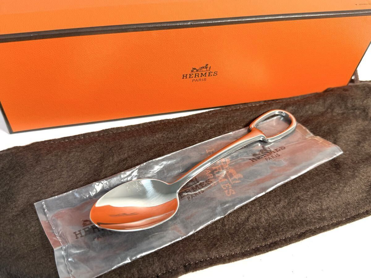 - 4 未使用に近い HERMES エルメス アトラージュ デザートスプーン カトラリー 食器 大きい テーブルウェア シルバー系