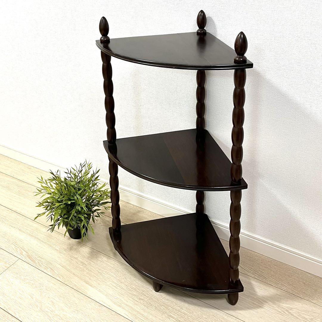 - (そ66)ミッドセンチュリー najico ナジコ 昭和レトロ収納 ヴィンテージコーナーラック 3段扇型ウッドシェルフ コンソールテーブル