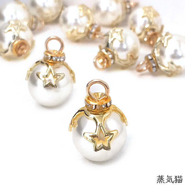 - c8620 透かし星パールチャーム16mmゴールド6個【宇宙ピアス イヤリング 手芸材料ハンドメイド用アクセサリーパーツ素材】蒸気猫パーツ