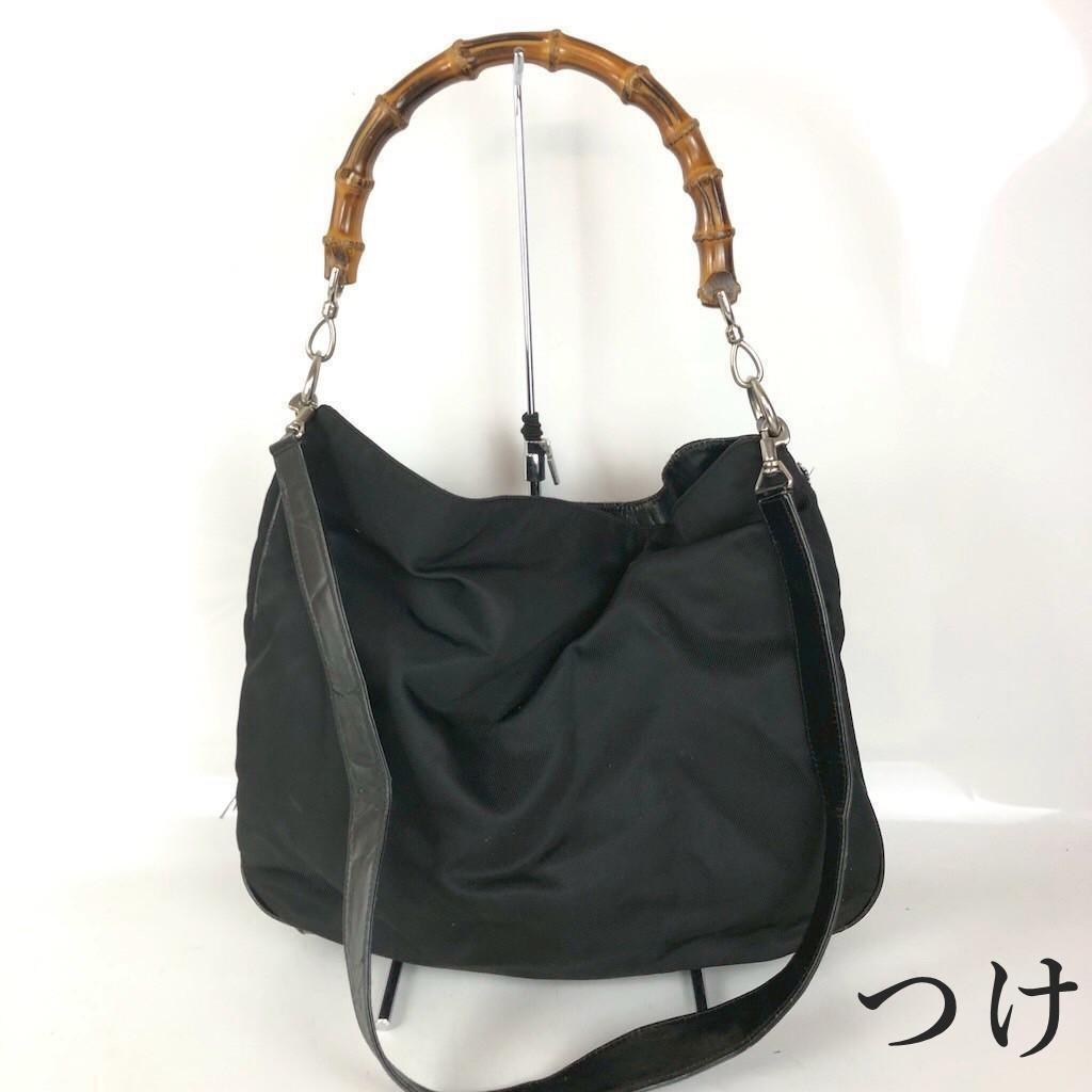 - 【正規品】GUCCI グッチ バンブー ハンドル ブラック ナイロン レザー 2WAY ショルダー ハンドバッグ トートバッグ ビンテージ 斜め掛け可