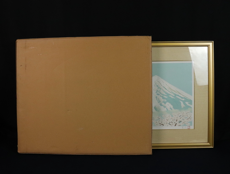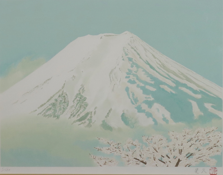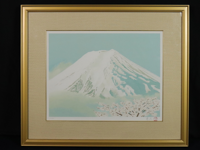 - 10839■【真作】三輪晃久 富士図 シルクスクリーン 限定180部 直筆サイン 三輪晁勢の子 額装