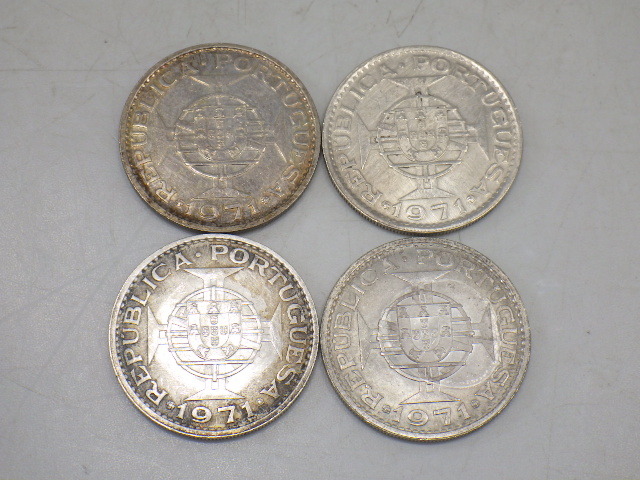 - h5I066Z- ポルトガル領 マカオ 1971年 5パタカ 銀貨 計4枚