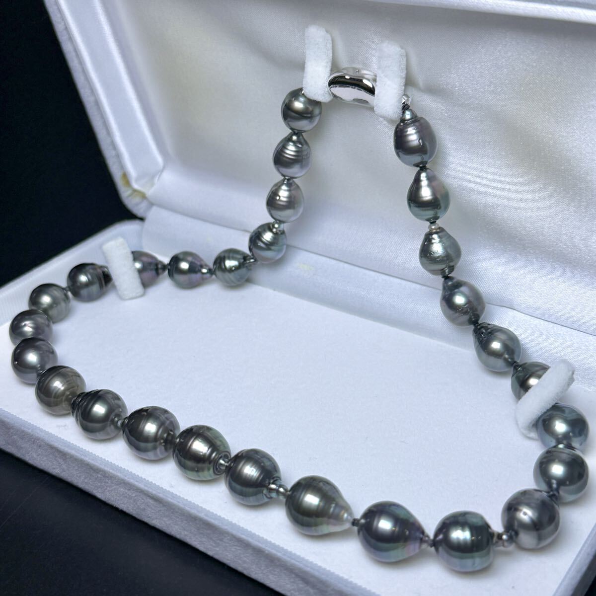 > 照り◎ 黒蝶パール ネックレス 10.59〜12.27㎜ 69.7g 45㎝ 本真珠 SILVER刻印 シルバー クロチョウ 南洋 pearl jewelry ピーコックグリーン