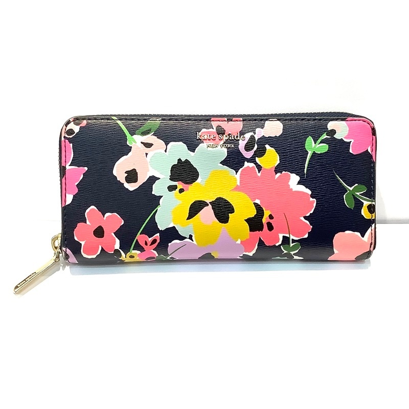 > ケイトスペード KATE SPADE 花柄ラウンドファスナー長財布 PWRU7264 J218 ネイビー×花柄【中古】KB-9732