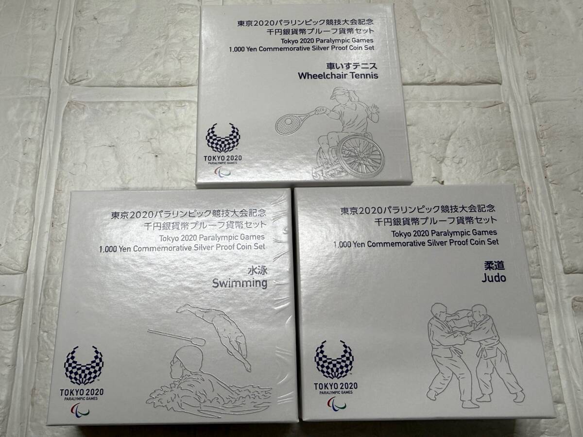 > ⑰ 東京2020パラリンピック競技大会記念 千円銀貨幣プルーフ貨幣セット 3種 3千円分 車いすテニス 水泳 柔道