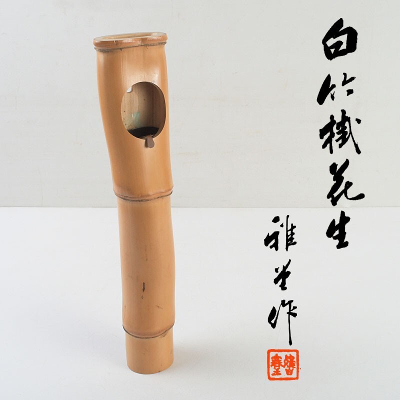 - 茶道具 雅堂作 白竹製 掛花入 花入 共箱 CNWG