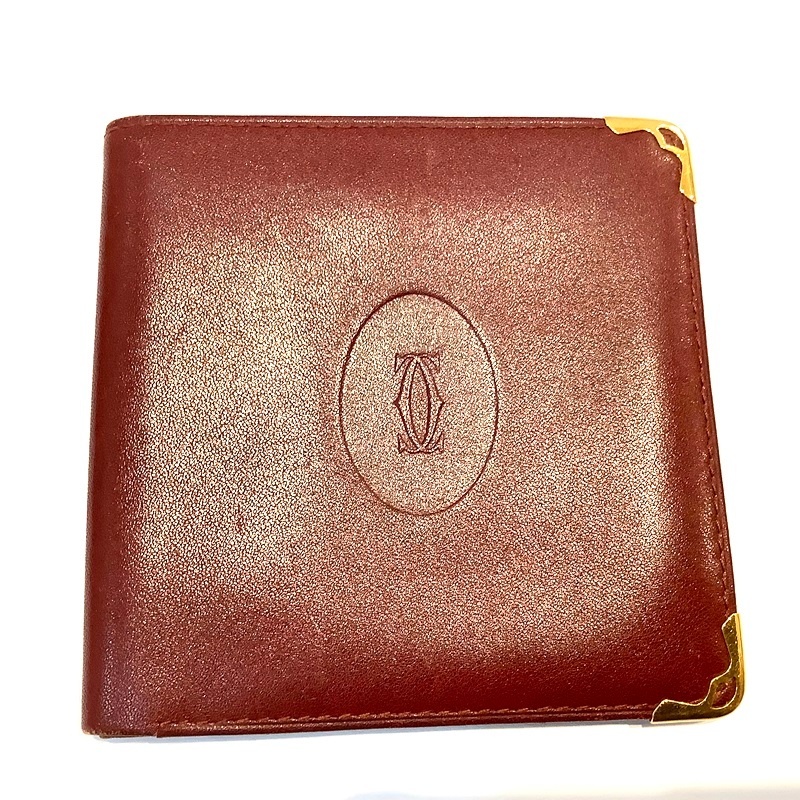 - カルティエ Cartier ボルドー 2つ折り札入れ 小銭入れなし 【中古】KB-9893