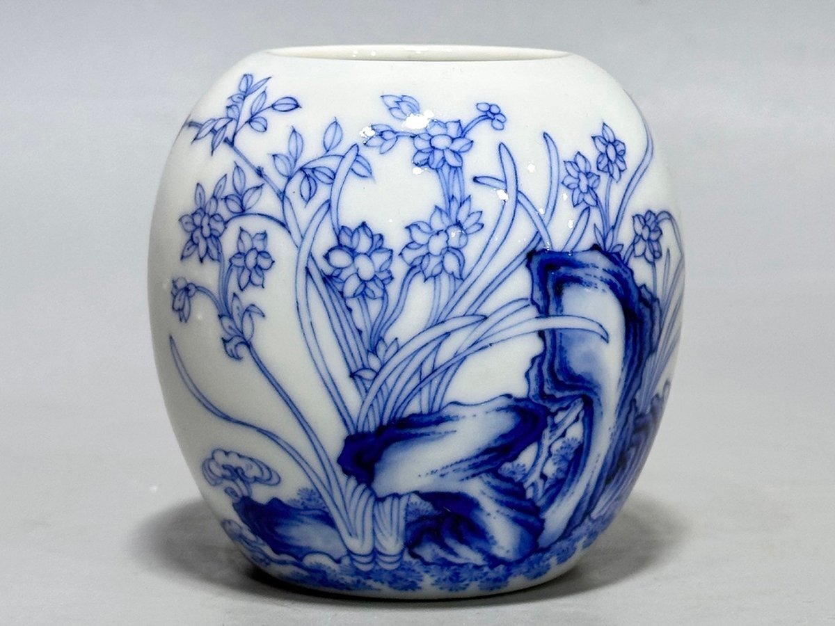 - 【安】清時代 大清雍正年製 青花花卉紋水盂 唐瓷 染付 古陶瓷 古美味 中国古美術 古董品 333