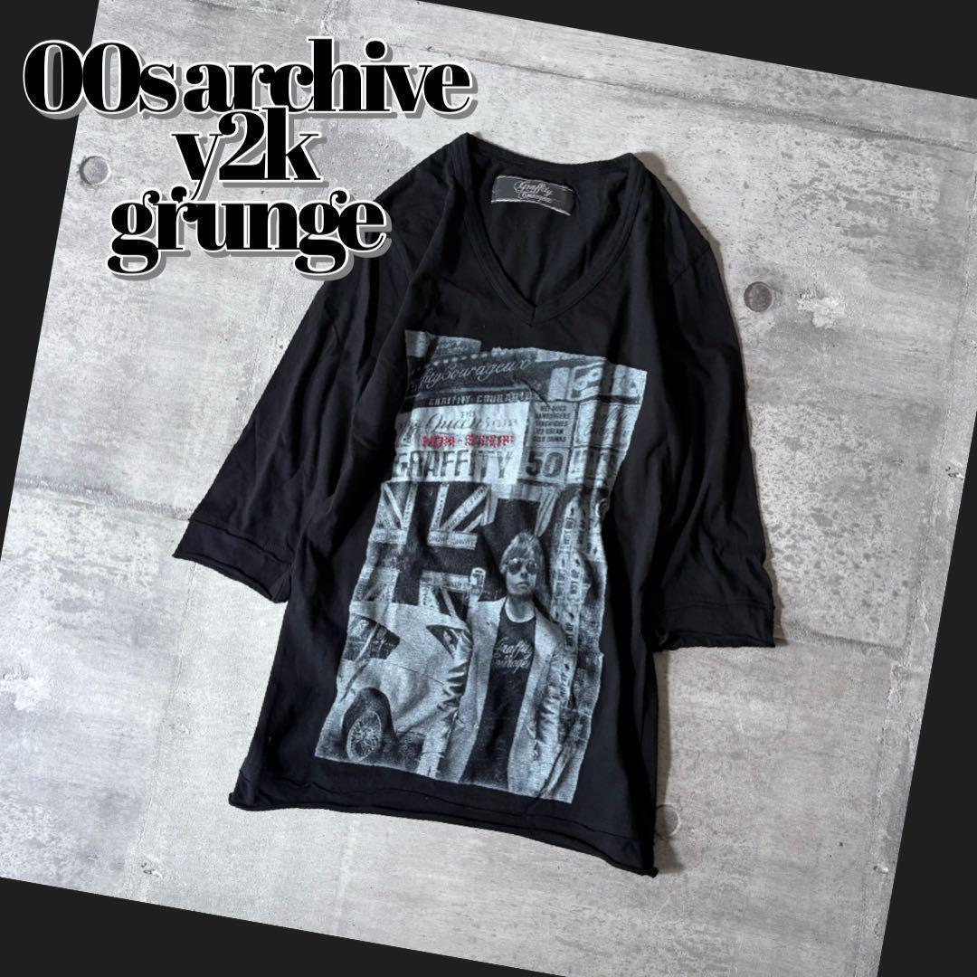 - 00s archive 5分袖 Tシャツ 平成ギャル男 ラインストーン y2k