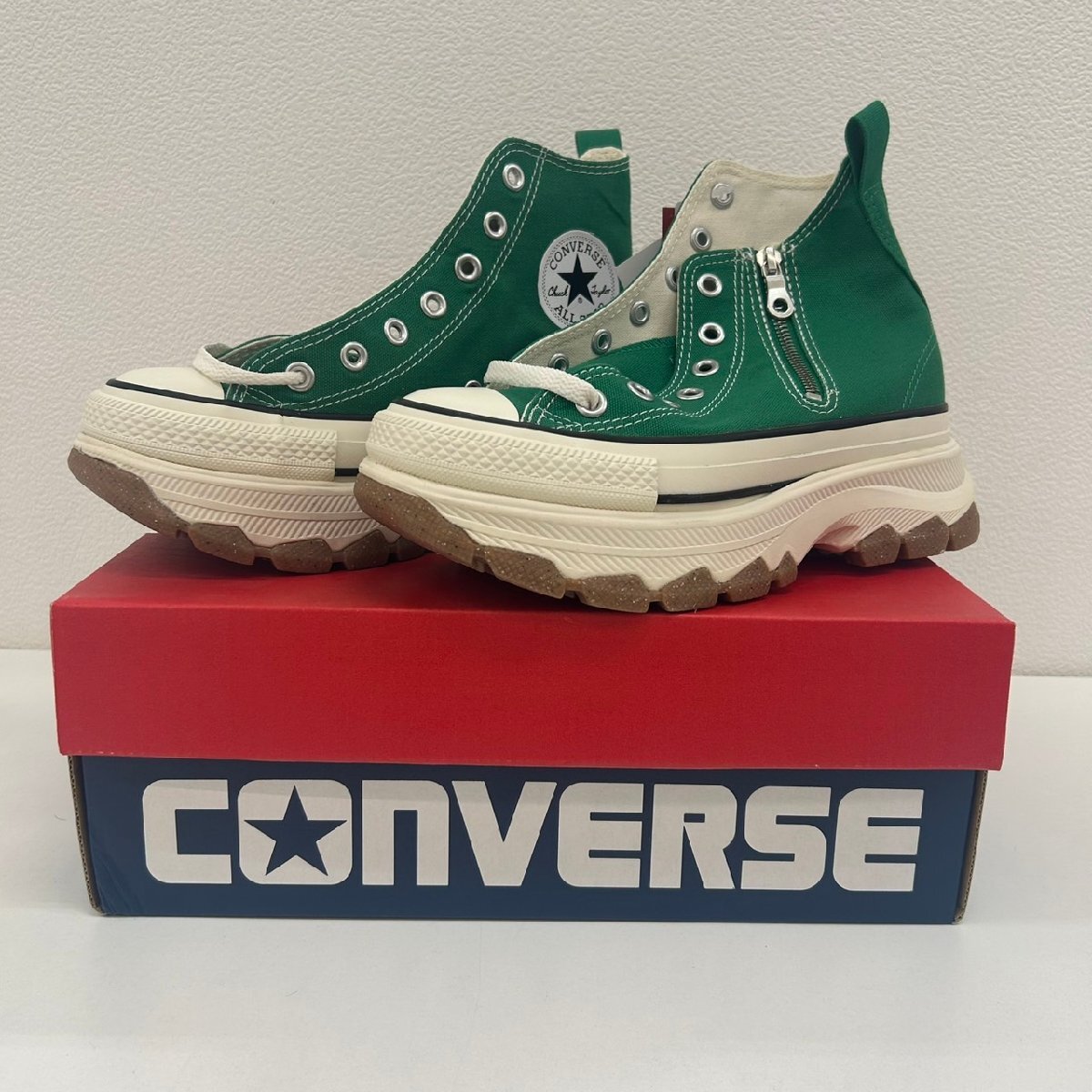 > 【HPF92520】1円~ CONVERSE コンバース ALL STAR 厚底ハイカット スニーカー グリーン ファスナー 23.5㎝ 箱付き タグ付き ファッション
