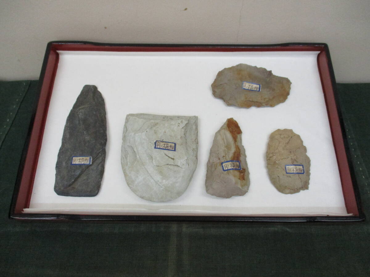 - 〈石器×5点 月ノ木前畑出土記載〉SE257 検/山形県南陽市月ノ木遺跡 縄文時代前期 大型石斧 石箆 石匙