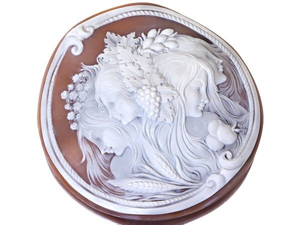 > 【ジュエリー極】ジェンナロ・ガロファロ作 妖艶な4人の女性の彫刻 高級シェルカメオルース 78.7mm×78.1mm w5695m【送料無料】