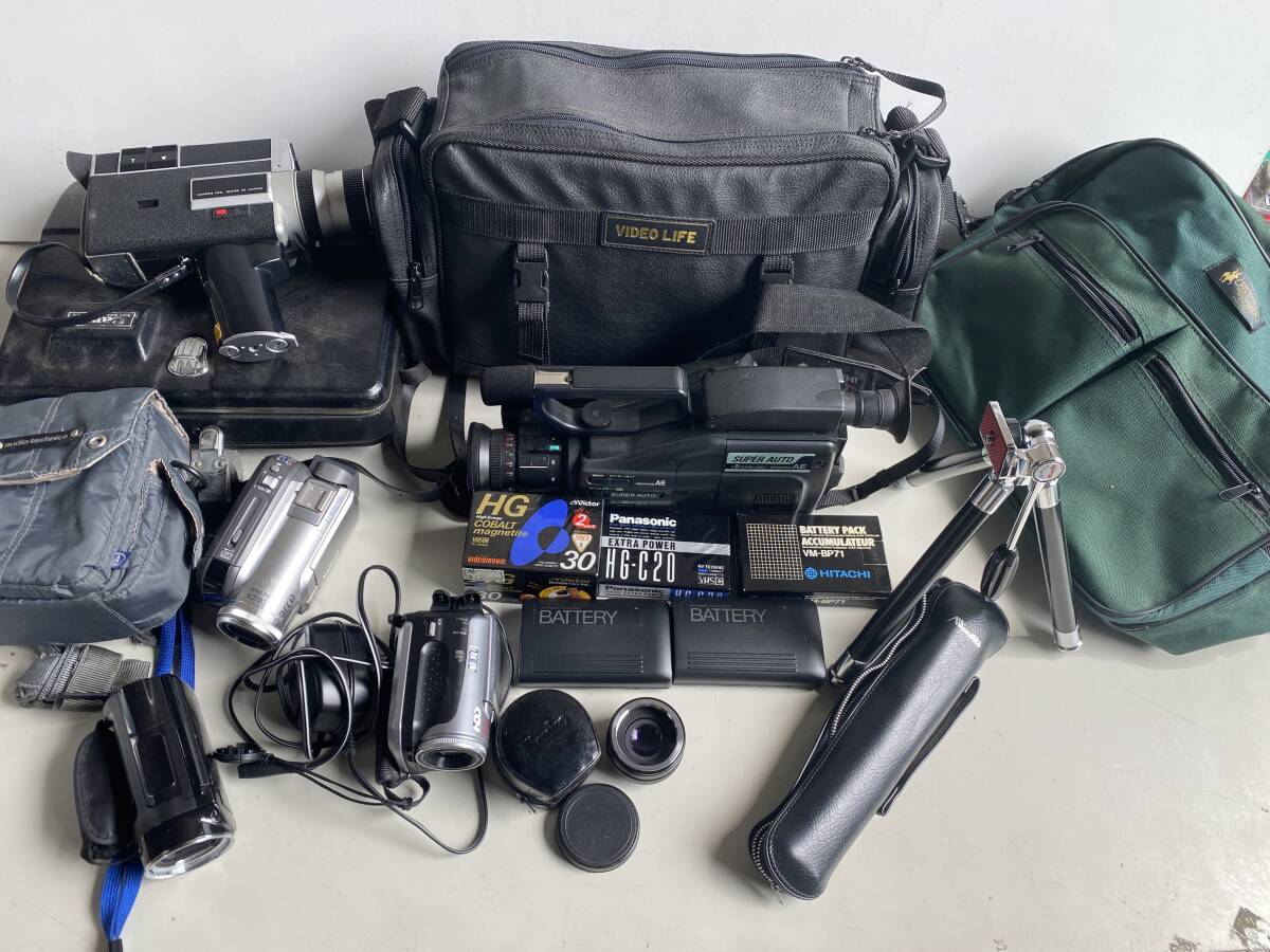 > ⑤t362◆カメラ◆大量 まとめて Panasonic/Victor/Canon ビデオカメラ 8mmカメラ C33 ZOOM 518 SV 三脚 GZ-MG40-S/NV-GS320 等