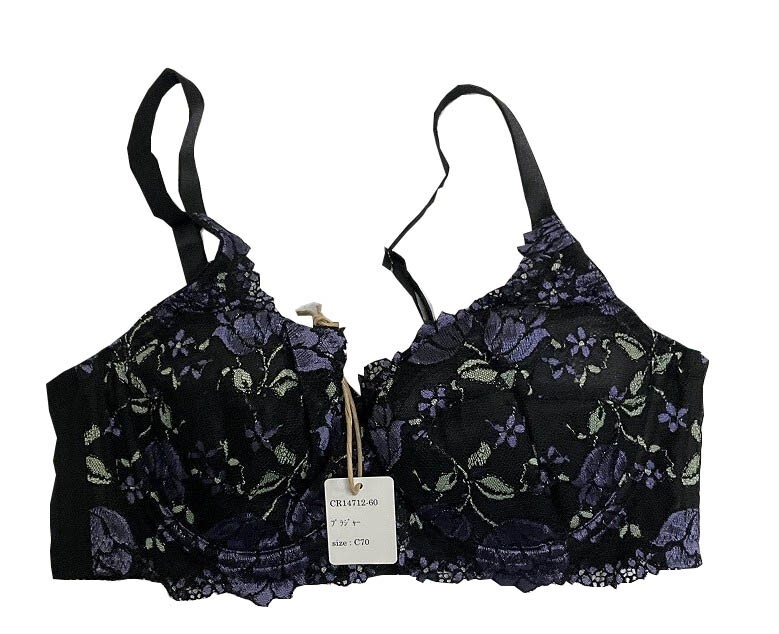 - CR14712-60 IB⑥【特価】新品 ブラジャー C70 1枚 ブラック 花柄 レース 刺しゅう フルカップ ストレッチ おしゃれ 華やか レディース
