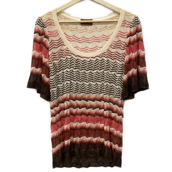 - ミッソーニ MISSONI 半袖カットソー サイズ46 L - アイボリー×ダークブラウン×マルチ レディース クルーネック トップス