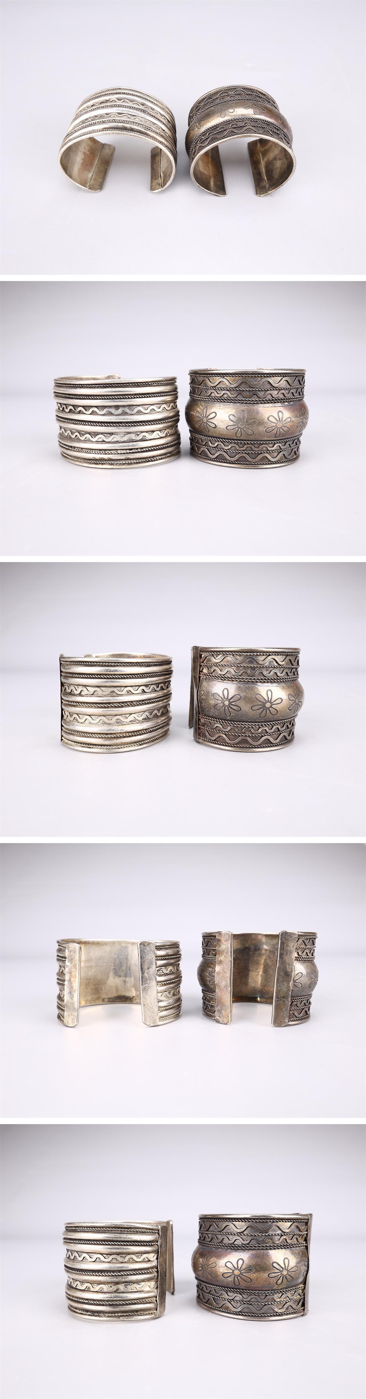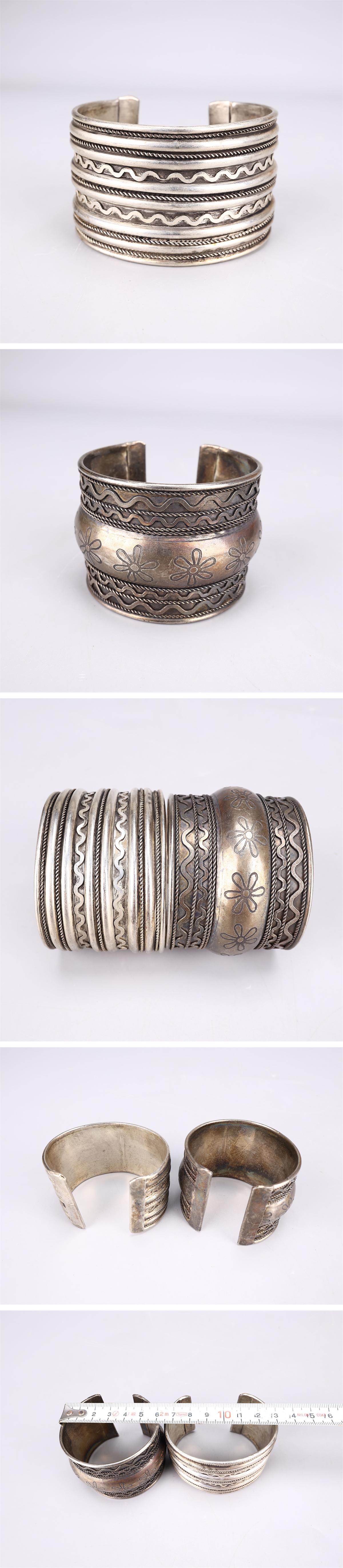 【吉】GB477 唐物 【純銀製】 少数民族 腕輪 2点 一対 重75g/本物保証 美品!