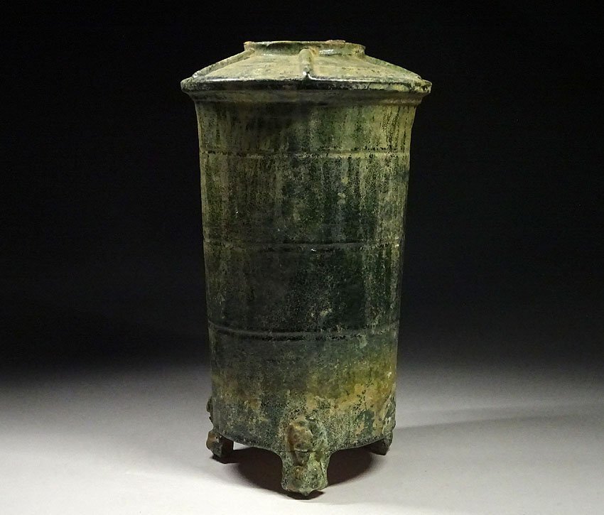 - 緑屋h■ 中国古玩 漢 緑釉 三足 穀倉壺 唐物 時代物 i9/7-7370/12-2#80