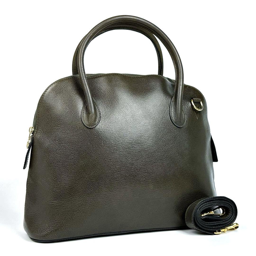 - 美品 CELINE セリーヌ ハンドバッグ 2way ショルダーバッグ トート 書類鞄 トリオンフ ロゴ型押し ゴールド金具 A4収納 レザー カーキ 人気