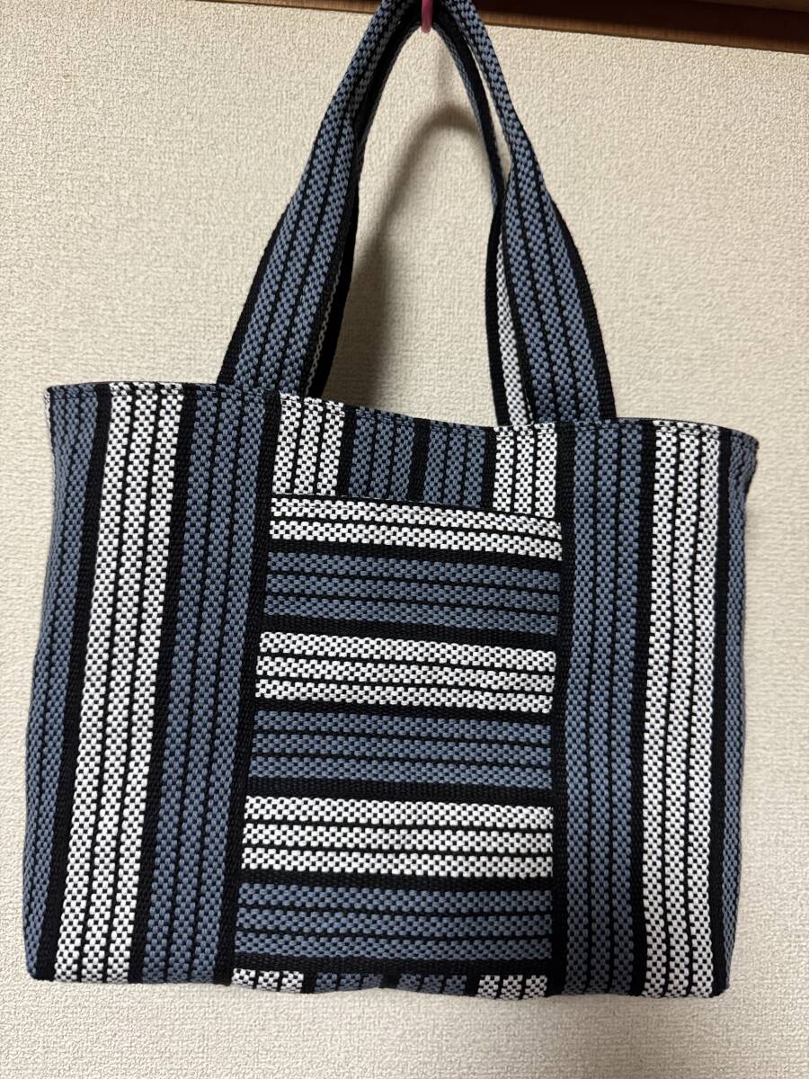 - ハンドメイド 前掛け紐×デニム トートバッグ 真田紐 / 酒屋前掛け紐 和柄 和風 ランチバッグ トートバッグ エコバッグ 6ポケット