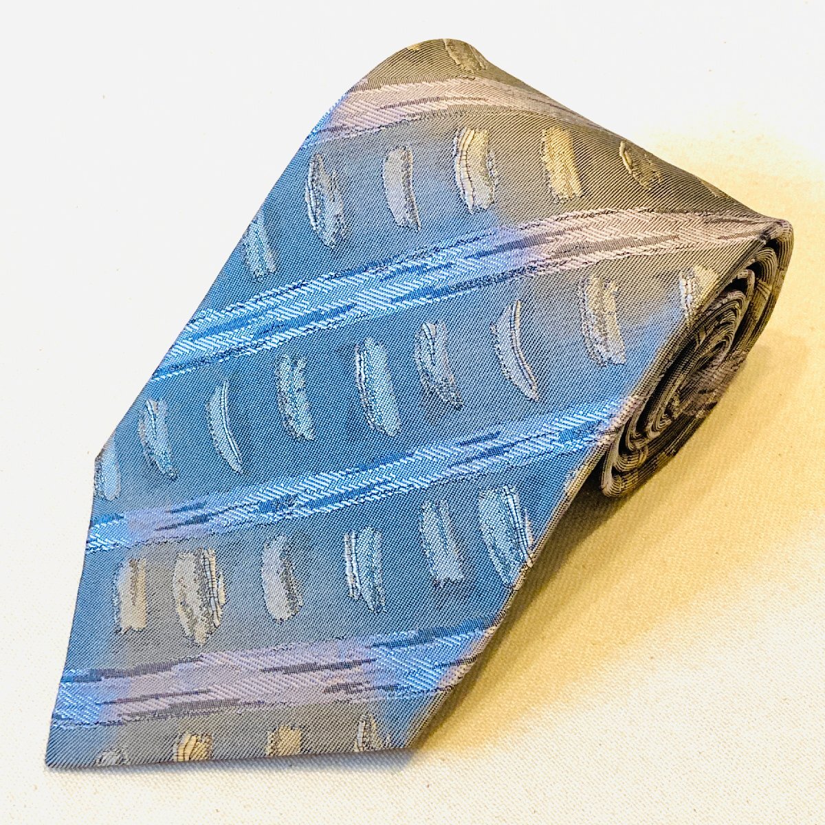 > YVES SAINT LAURENT イヴサンローラン 日本製 絹 シルク SILK 100% 高級 ネクタイ シルバー/パープル系 総柄 アート