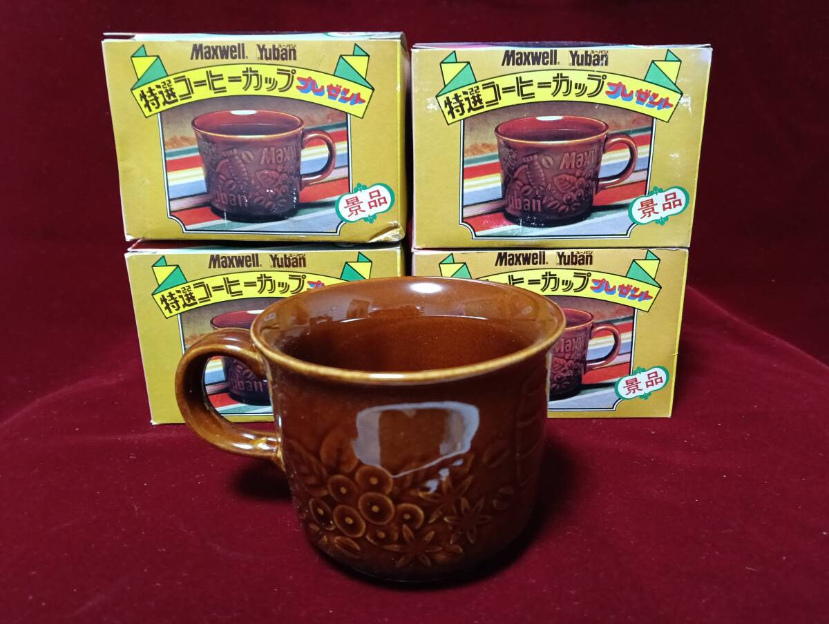 - AGF マックスウェル ユーバン 特製コーヒーカップ 4個セット 陶器製 非売品 未使用品☆当時物 昭和レトロ ノベルティ
