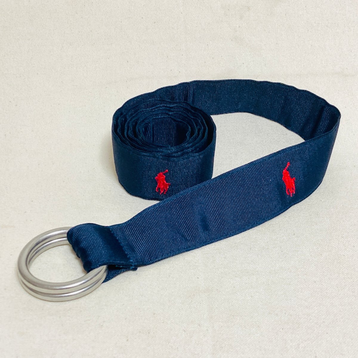 - Polo by Ralph Lauren ラルフローレン MADE IN THE USA/米国製 バックル 刺繍 穴なし フリーサイズ ベルト ネイビー/紺