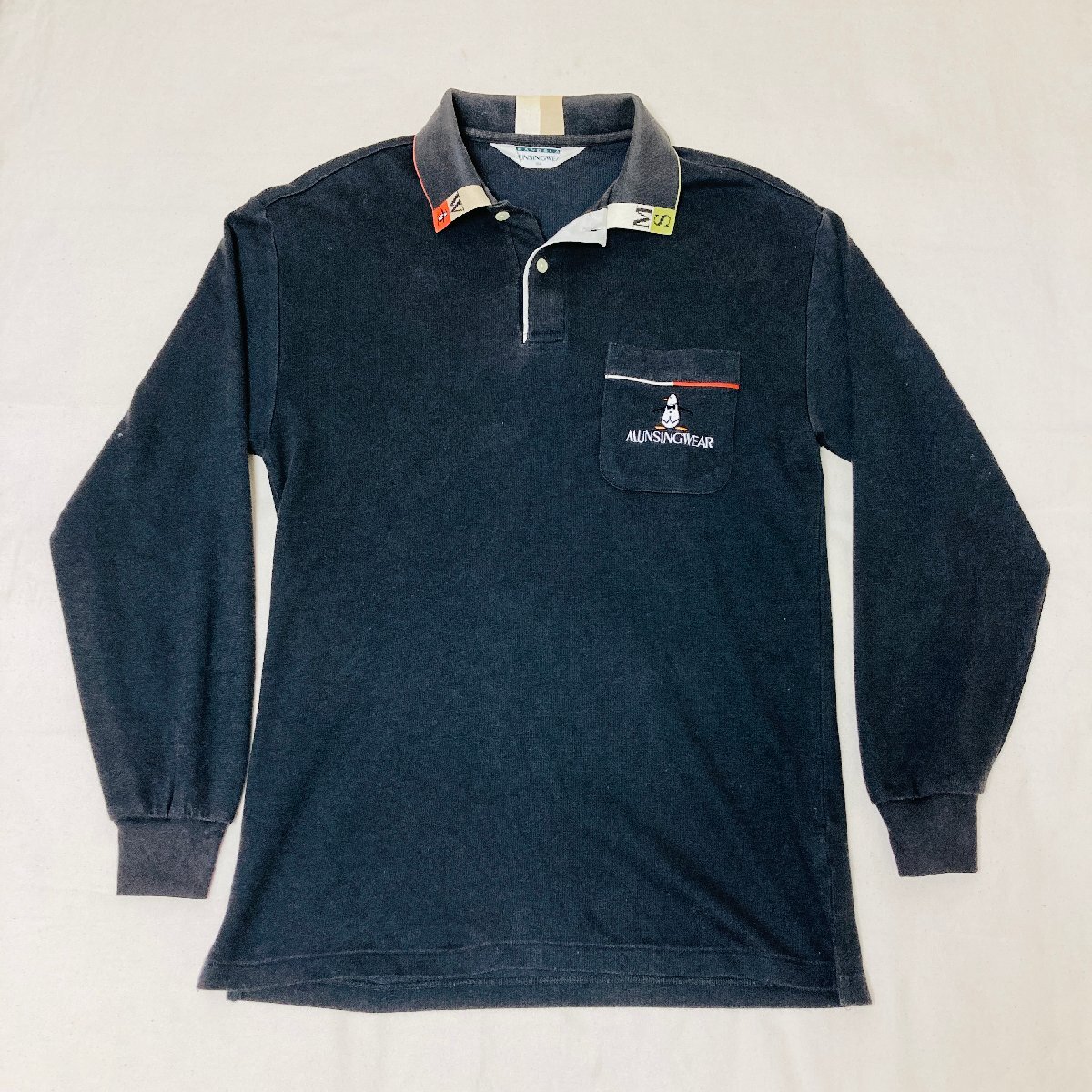 - MUNSINGWEAR マンシングウェア 日本製 ロゴ刺繍 ロングスリーブ ポロシャツ ブラック/黒系 SA GS(1)1258