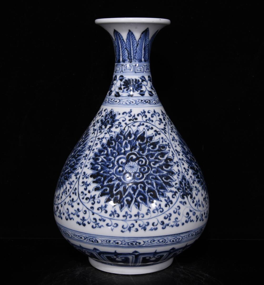 > ◆珍蔵◆中国古美術 大明永樂年製款 青花 古陶磁 纏枝蓮花紋玉壷春瓶 精品 細密細工造 置物 擺件 骨董品 古賞物 時代物 T08