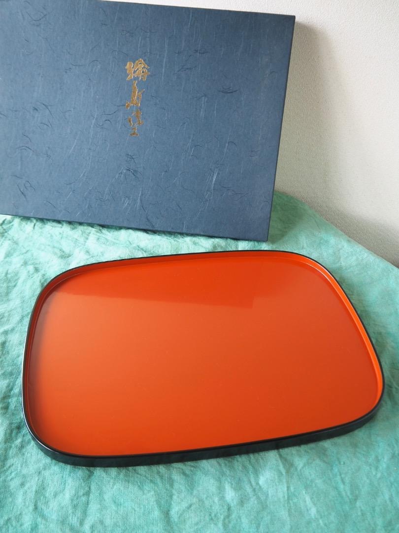 - 【OAN】 輪島塗 朱漆塗 隅丸長方盆 箱付 骨董 古美術 古道具 民藝 古民藝 茶道具 懐石 古玩 漆器膳 能登 輪島