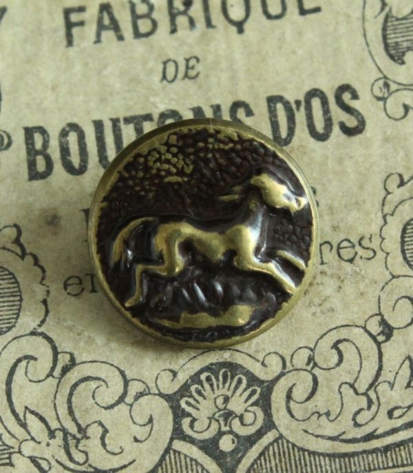 - 即決 メタルボタン 1個 φ16mm 馬 ハンティング 狩猟 動物 アニマル ジレ フランス輸入 ヴィンテージ b