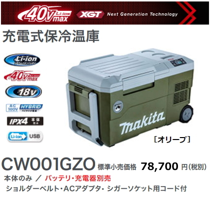 > マキタ 充電式 保冷温庫 CW001GZO オリーブ 40V 18V AC100V DC12-24V 新品