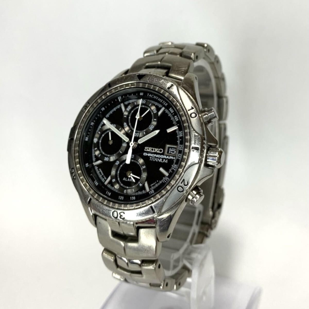 > 【稼働品】 SEIKO セイコー 7T62-0AC0 メンズ 腕時計 クォーツ クロノグラフ デイト チタン シルバー w785