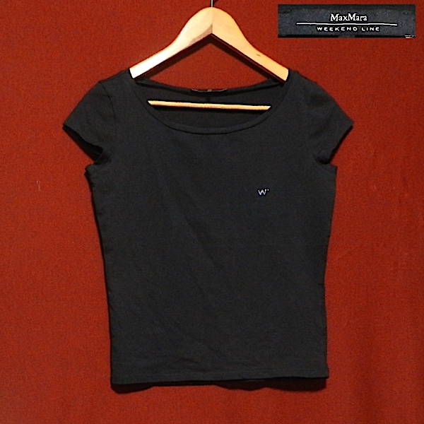 - MaxMara WEEKEND LINE マックスマーラ ストレッチ スリムフィット スワロフスキー風 W ロゴ Tシャツ カットソー 黒 レディース S サイズ