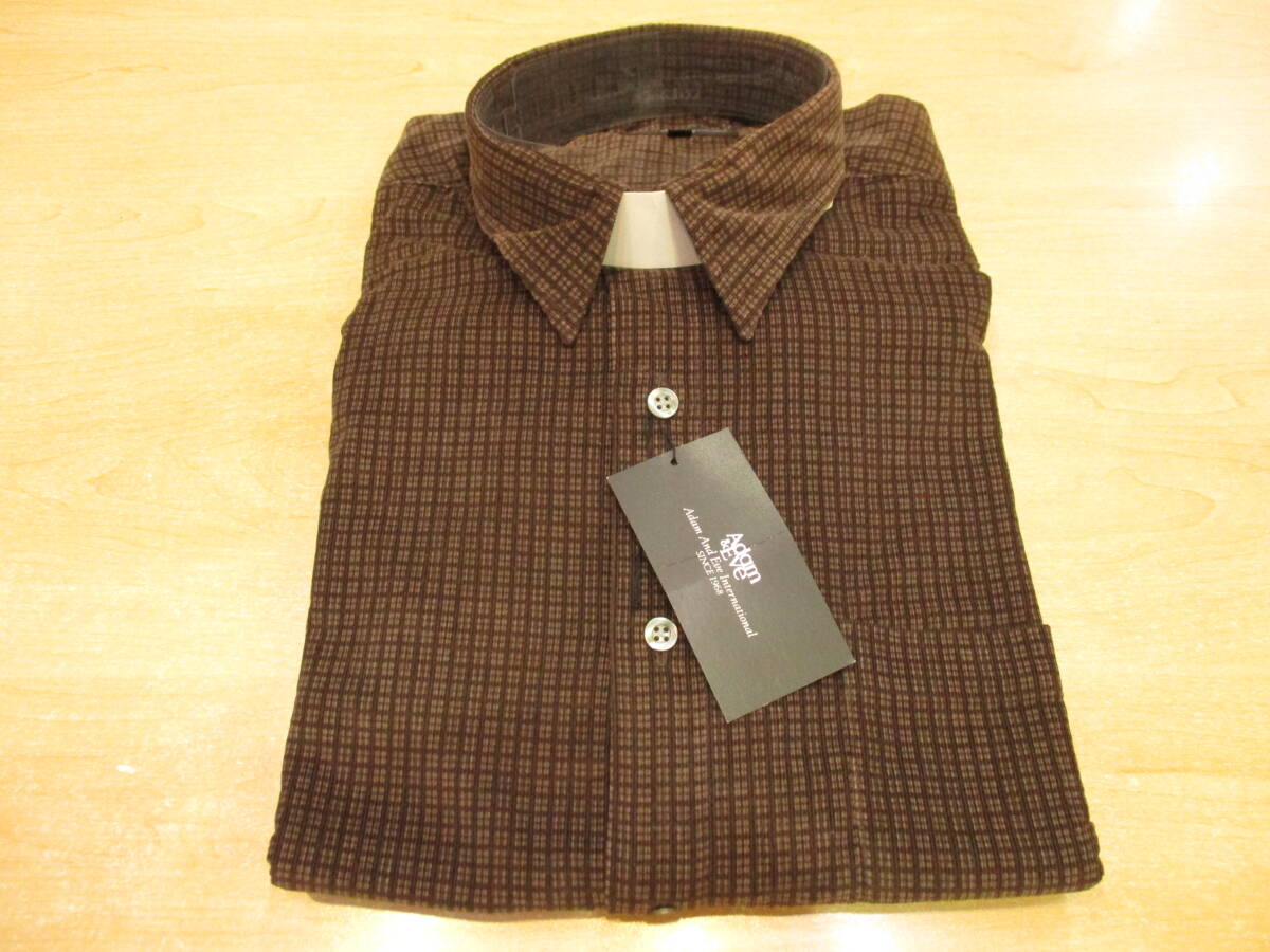 - メンズトップス Adam&Eve 長袖 シャツ コーデュロイ ブラウン Lサイズ 綿100% 胸ポケット付き 未使用保管品 箱無し