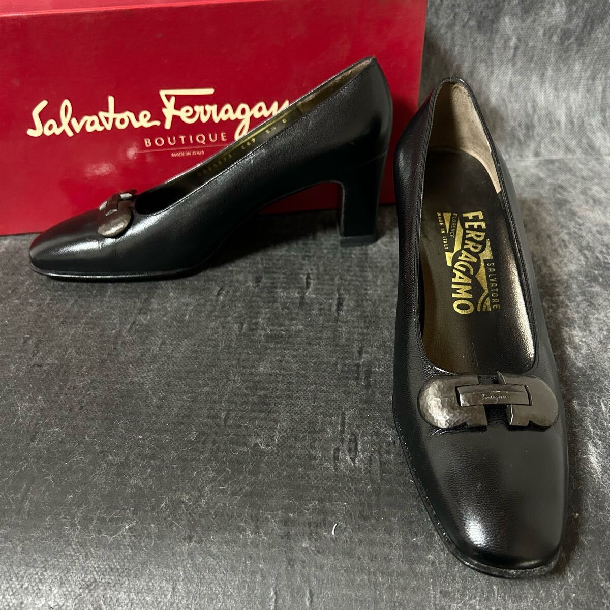 - 【美品】Salvatore Ferragamo サルバトーレ・フェラガモ パンプス ガンチーニ ヒール新品 51/2D 23cm相当 ブラック *EP