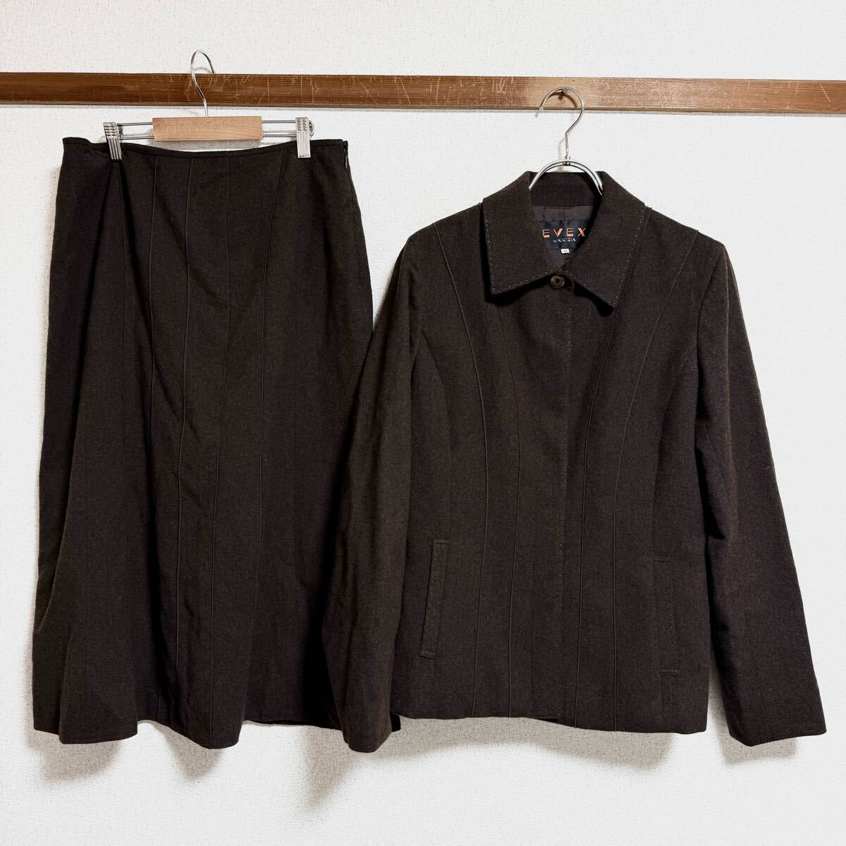 - EVEX by KRIZIA エヴェックスバイクリツィア スカートセットアップ ジャケットセットアップ ダークブラウン レディース サイズ42-44 *DF-1