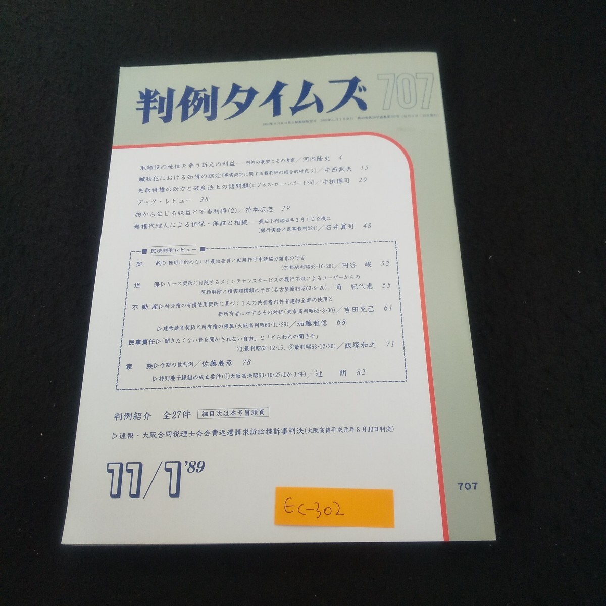- Ec-302/判例タイムズ 1989年11月1日号 事実認定に関する裁判例の総合的研究3/ビジネス・ロー・レポート35/L3/70926