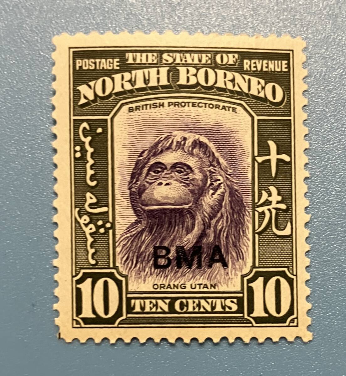 - 南方占領地 切手 旧北ボルネオ 10c 10セント オラウータン BMA 加刷 変色 裏糊 1939年1月1日発行 未使用