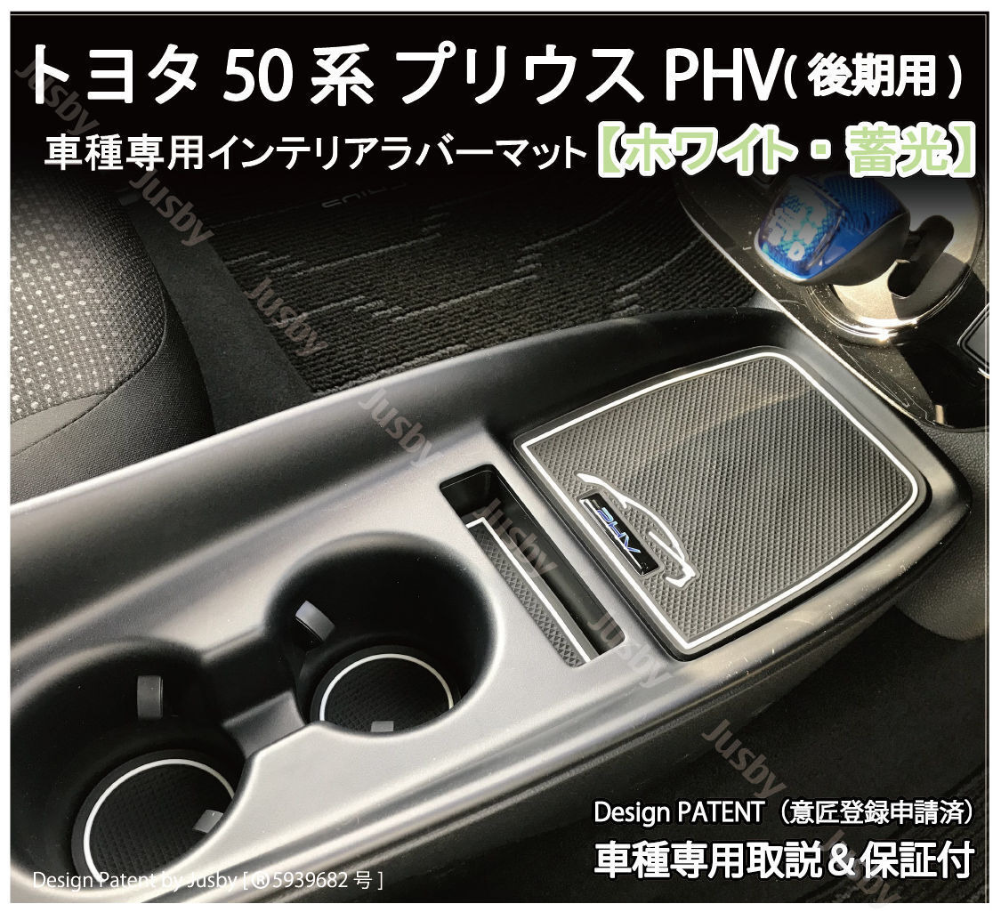> (取説&保証付)50系 プリウスPHV(後期型)専用(ホワイト/蓄光)インテリアラバーマット ドアポケットマット パーツ トヨタ 50 ZVW52