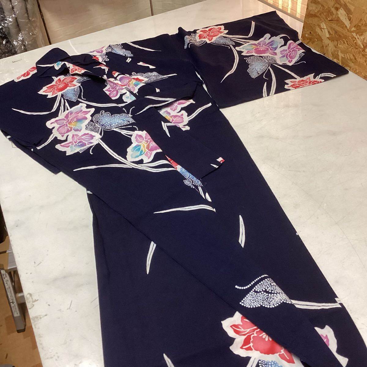 - 和装 浴衣 ネイビー 赤 ピンク 花 青 蝶 エレガント 可愛い (へ98Y)