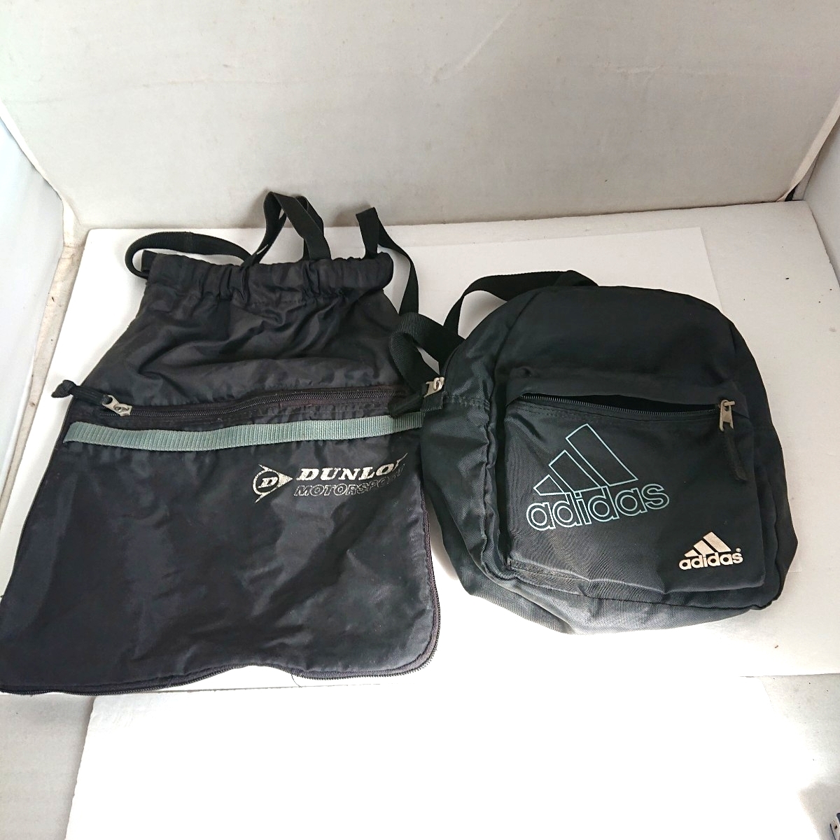 - 【リュック2点】DUNLOP・Adidas リュック ブラック ナイロン スポーツ 当時物 現状品 ぷらみ 0926 123