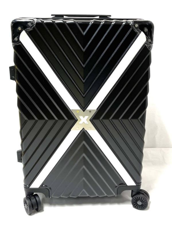 > 【R157】新品 未使用 スーツケース キャリー 4輪 ブラック メタリック リモワ風 Xデザイン 56L 旅行カバン ボンイージ ファスナー式 b